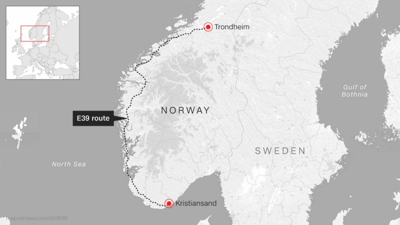 To make the 1,100-kilometer journey between the southern city of Kristiansand and Trondheim in the north via the west coast, for example, currently takes 21 hours, and requires seven ferry crossings.