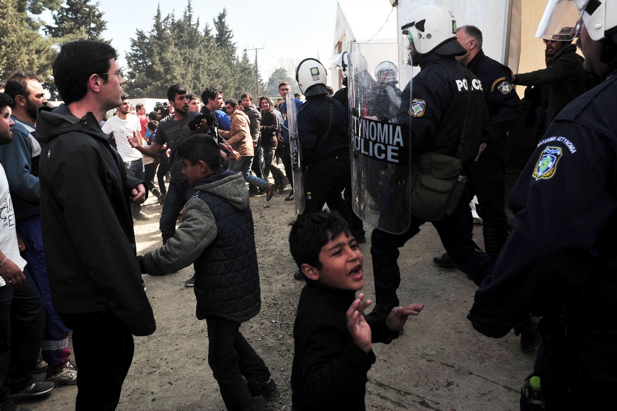 Greek police clashed on Saturday with groups of migrants and refugees camped in a field close to the country’s northern border hoping to cross to neighboring countries and travel onward to northern Europe, witnesses said.