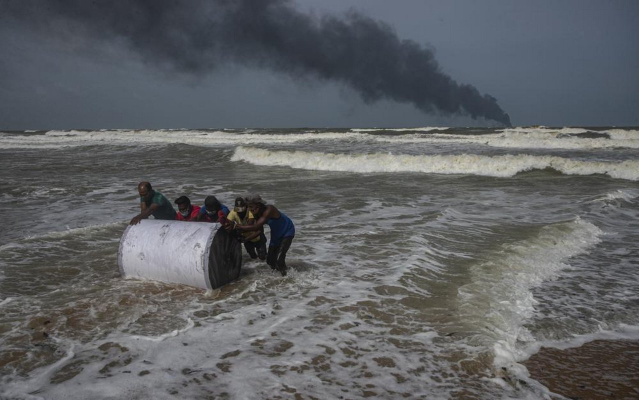 The Sri Lanka navy believes the fire was caused by chemicals being transported on the Singapore-flagged ship. It was carrying 1,486 containers, including 25 tons of nitric acid and other chemicals that were loaded at the port of Hazira, India, on May 15.