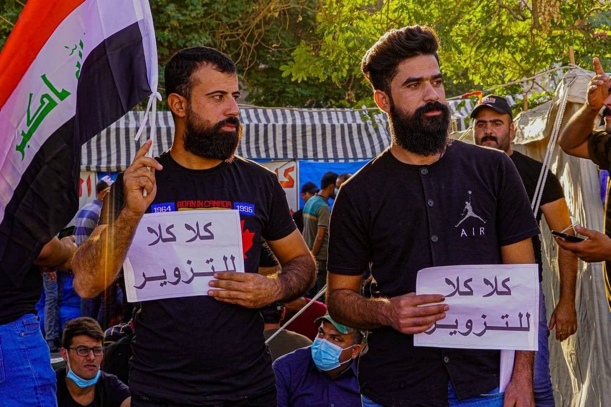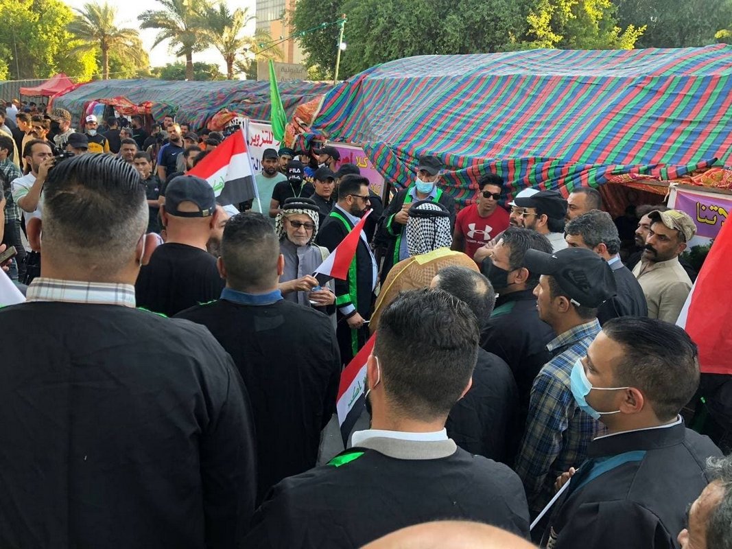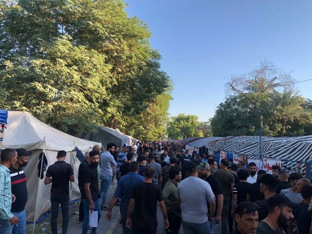Large crowds protesting election fraud heads to the Green Zone in Baghdad