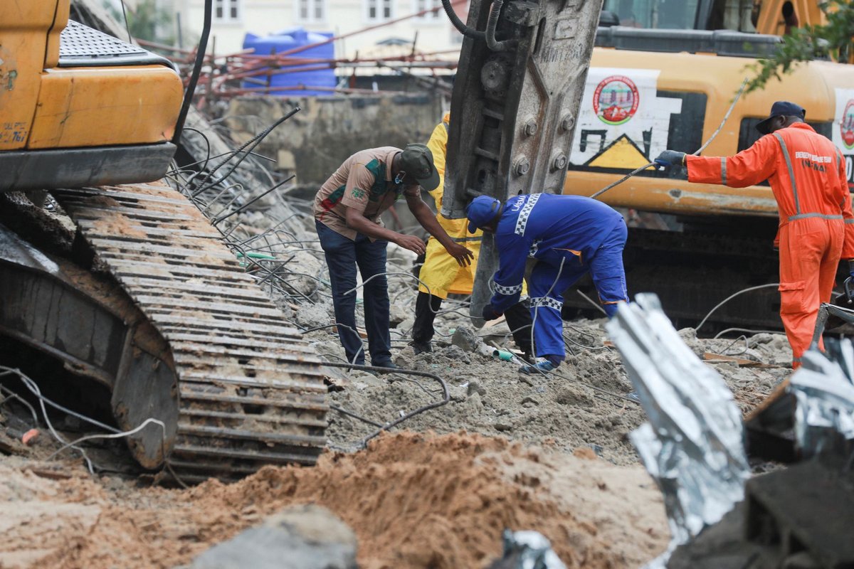 Reuters witnesses saw large earth-moving equipment removing debris as a crowd watched.