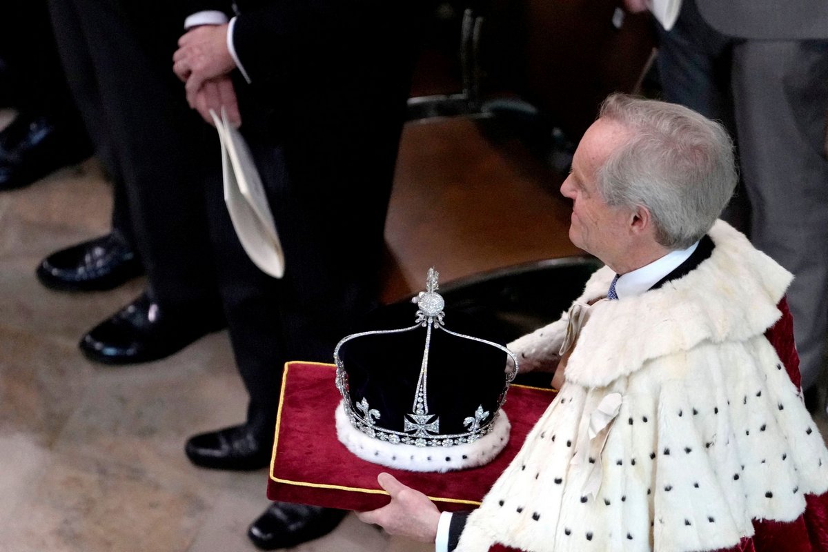 Saturday’s event was on a smaller scale than that staged for Queen Elizabeth in 1953, but still sought to be spectacular, featuring an array of historical regalia from golden orbs and bejewelled swords to a sceptre holding the world’s largest colourless cut diamond.