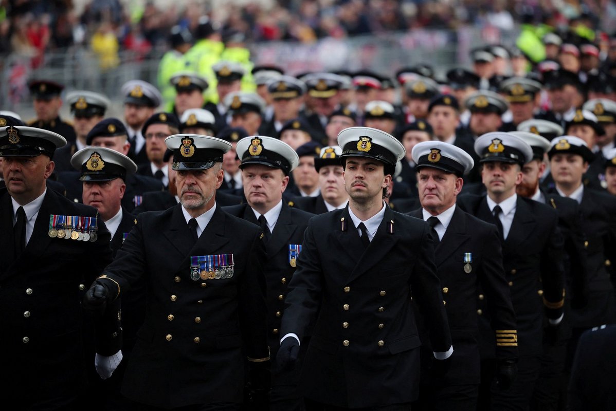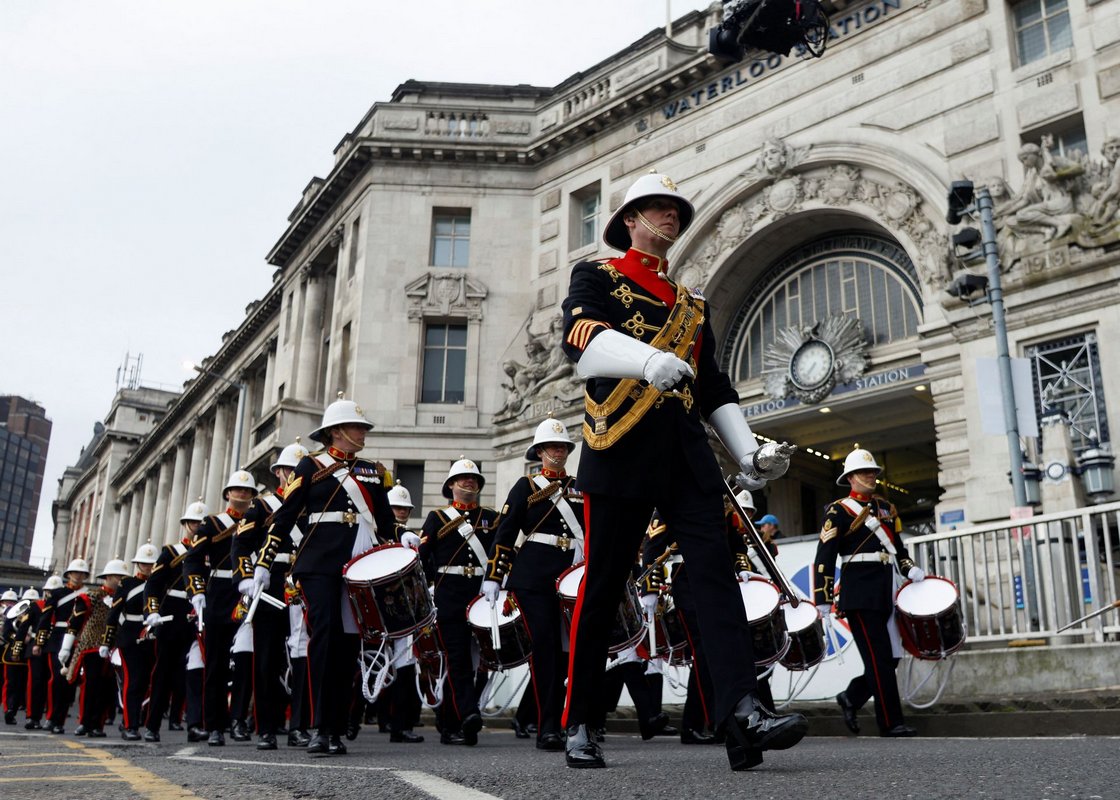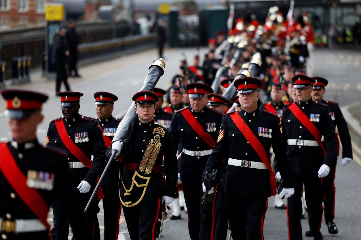 Meanwhile hundreds of soldiers in scarlet uniforms and black bearskin hats lined the route along The Mall, the grand boulevard leading to the palace, in what is the largest ceremonial event of its kind in Britain since the coronation of Charles’ mother.