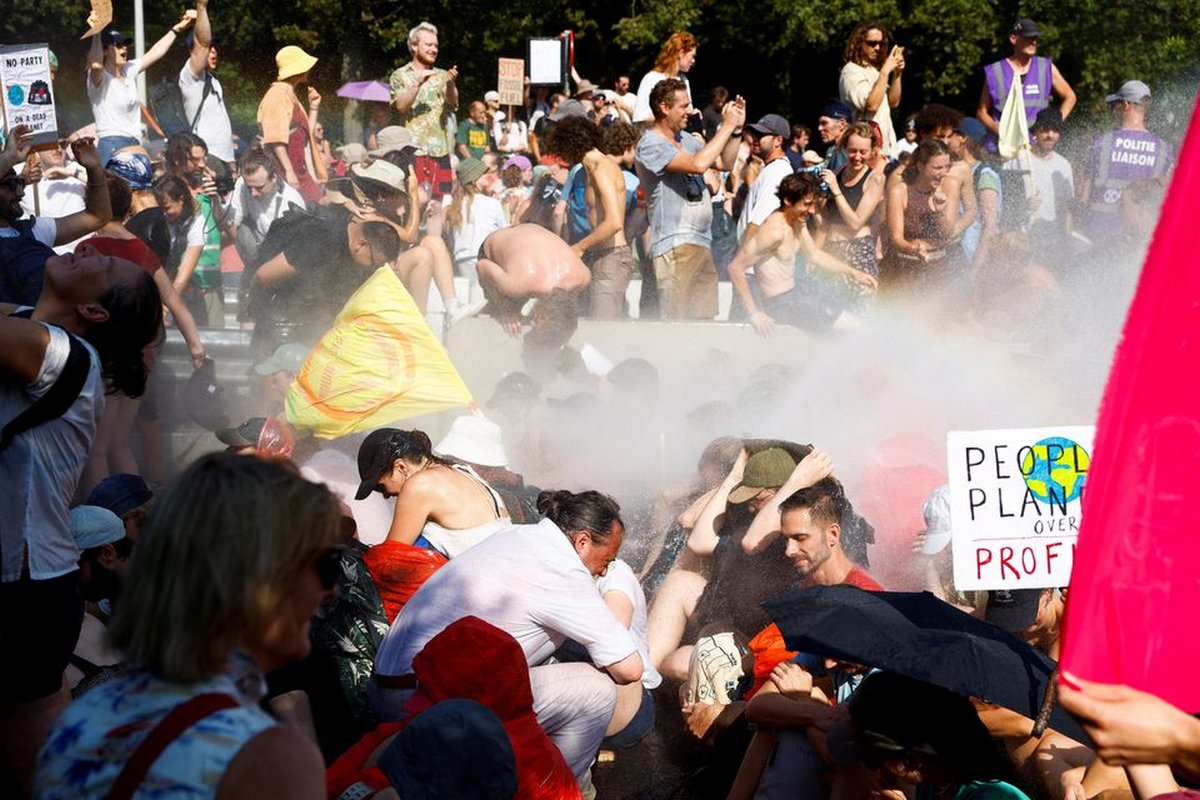 Police deployed water cannon to disperse climate activists protesting on a highway in the Netherlands on Saturday to demand an end to government subsidies for the fossil fuel industry.